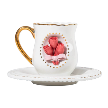 Nouveauté Tasse et soucoupe turques en céramique faites à la main Ensemble de fleurs en porcelaine Tasse à café expresso et soucoupe pour cadeaux