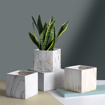Décoration d'intérieur de pot de fleur en céramique carrée moderne avec la finition enduite de poudre de conception de marbre OEM bienvenu